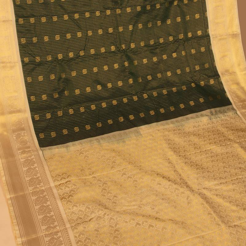 | Product Name | Bottle Green And Off White Semi Silk Saree | |