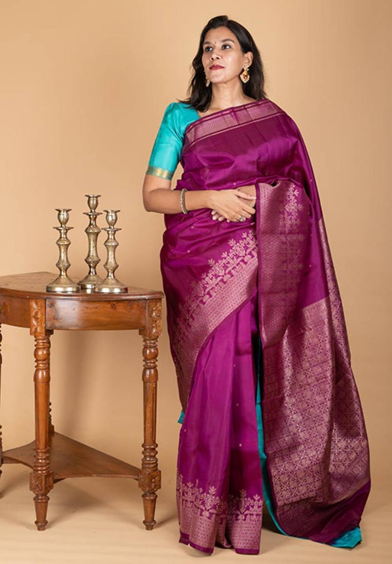Product Name | Brinjal Purple And Green Pure Silk Saree With Silk Mark Certified | |