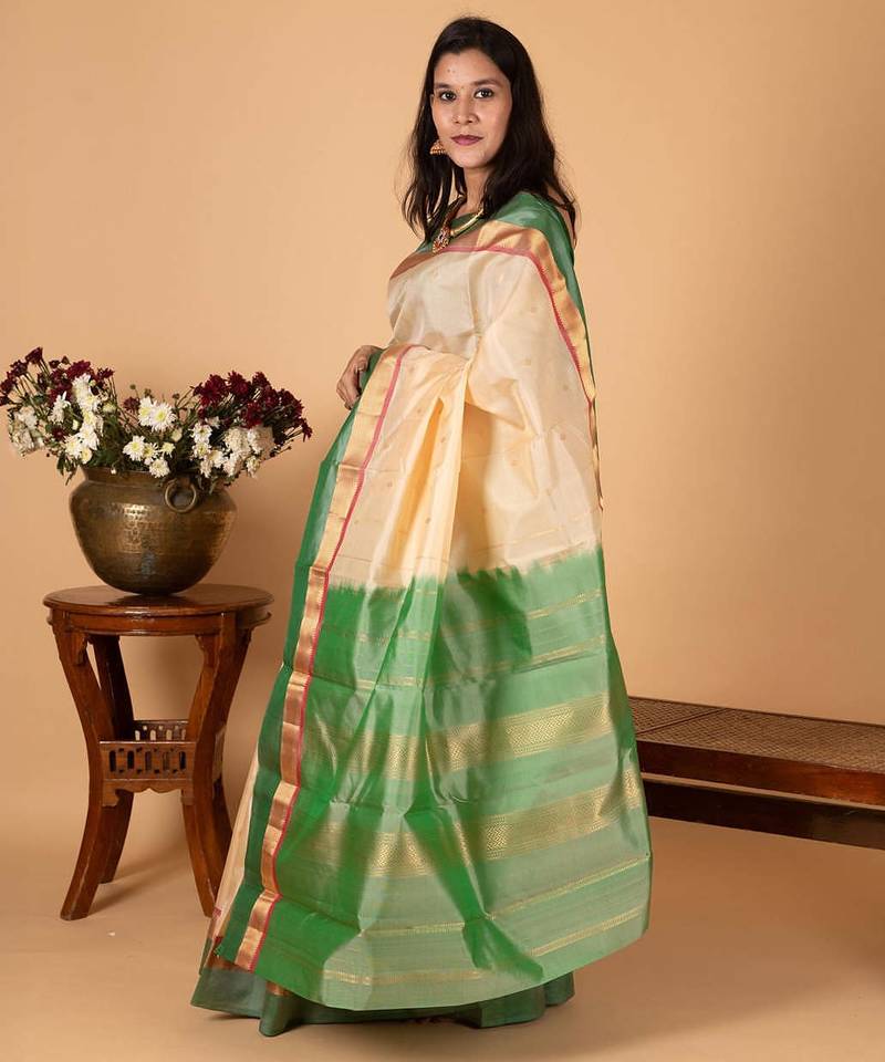 | Product Name | Cream White And Dual Tone Green Pure Kanjivaram Silk Saree | |
