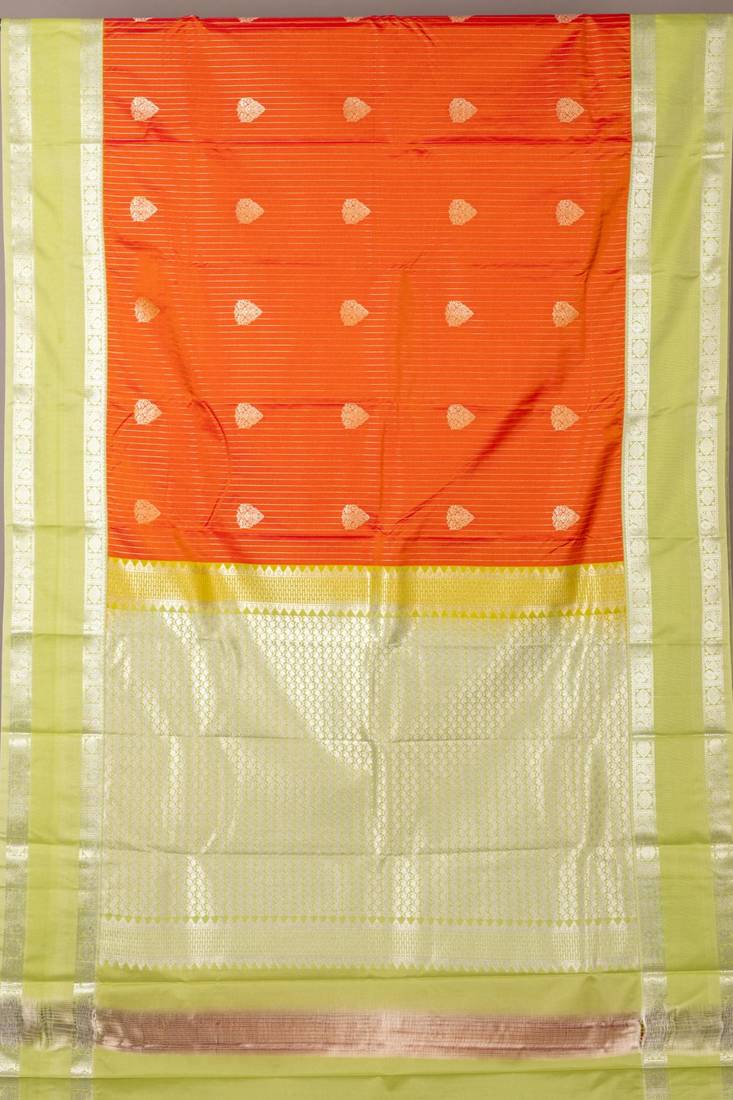 Golden orange and pastel green semi silk saree