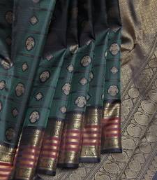 Green and black kanjivaram pure zari silk saree