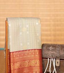 Grey green and blood red kanchi soft silk saree