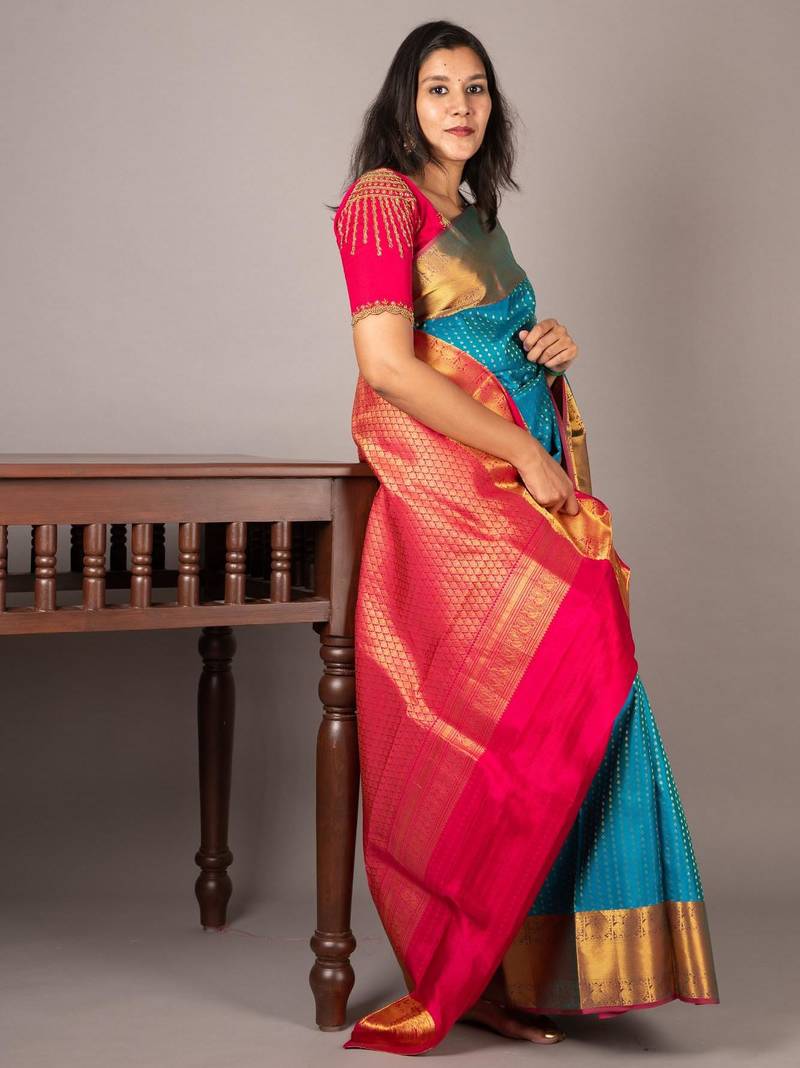 • | Saree | : | Color- Blue / Fabric- Pure Silk |