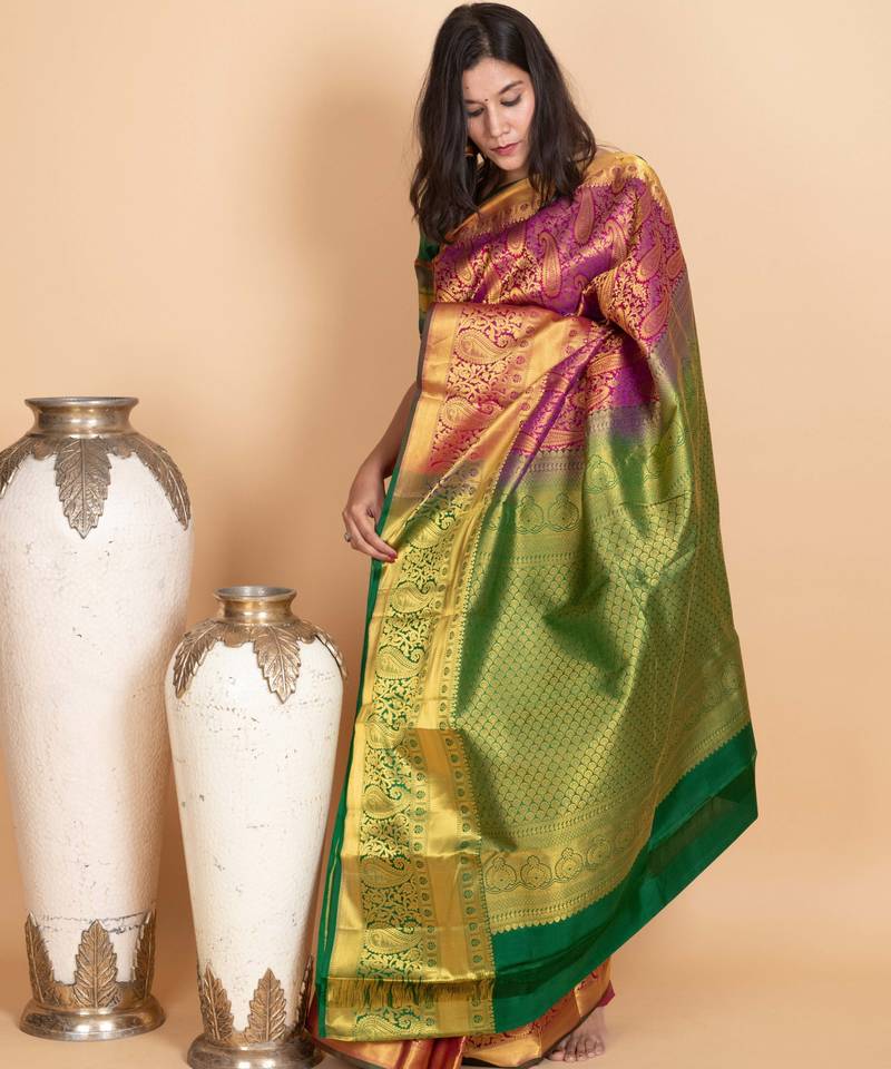 Magenta and forest green pure kanjivaram silk saree