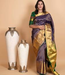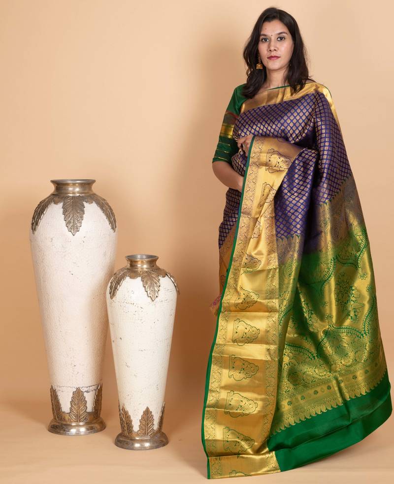 Midnight blue and forest green pure kanjivaram silk saree