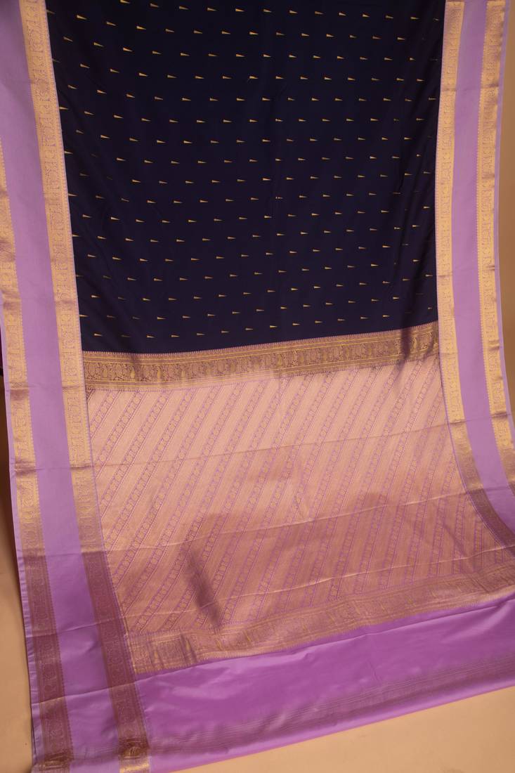| Product Name | Navy Blue And Lavender Semi Silk Saree | |