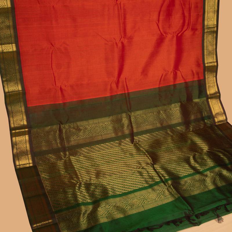 | • | Saree | : | Color- Orange / Fabric- Silk Cotton |