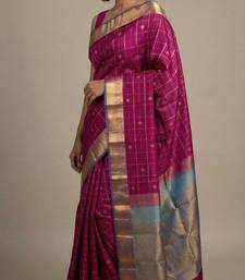 Orchid purple and dual tone blue pure touch silk saree