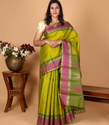 Parrot green and pickle green zero zari kanjivaram silk saree