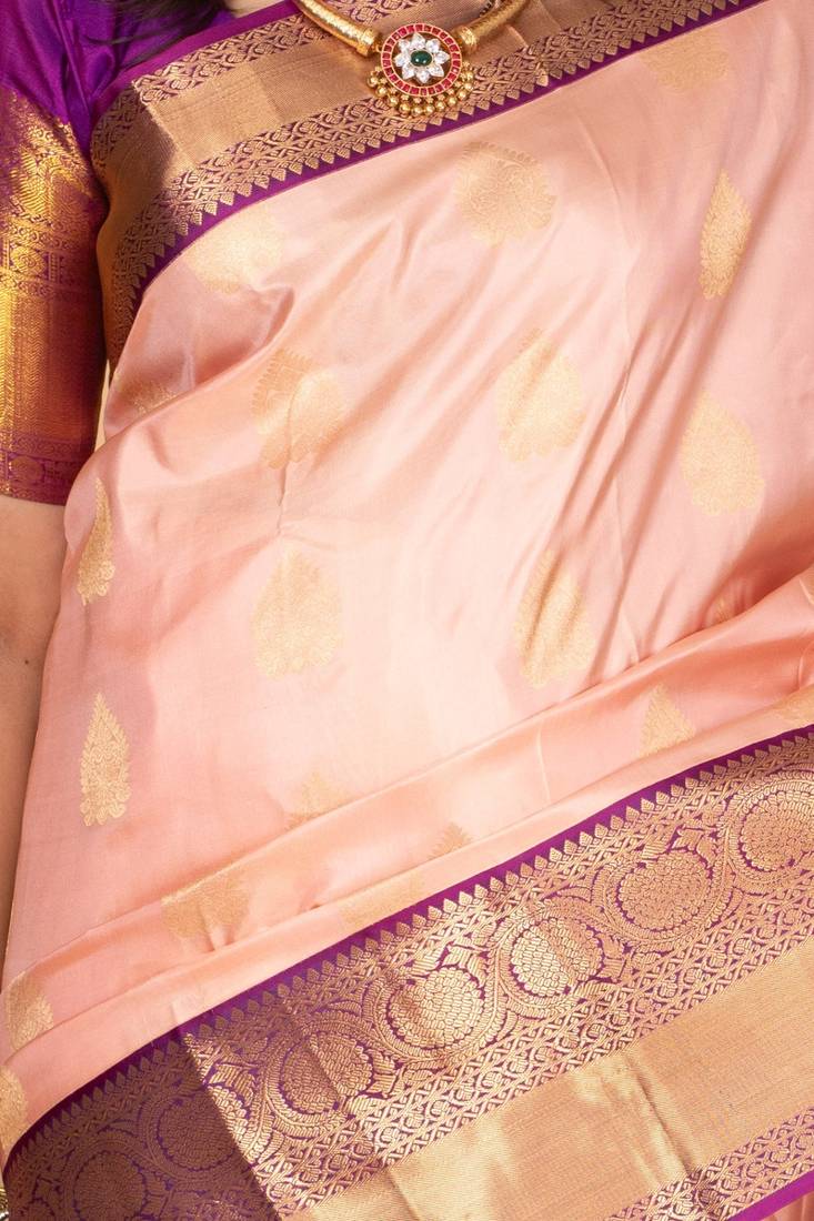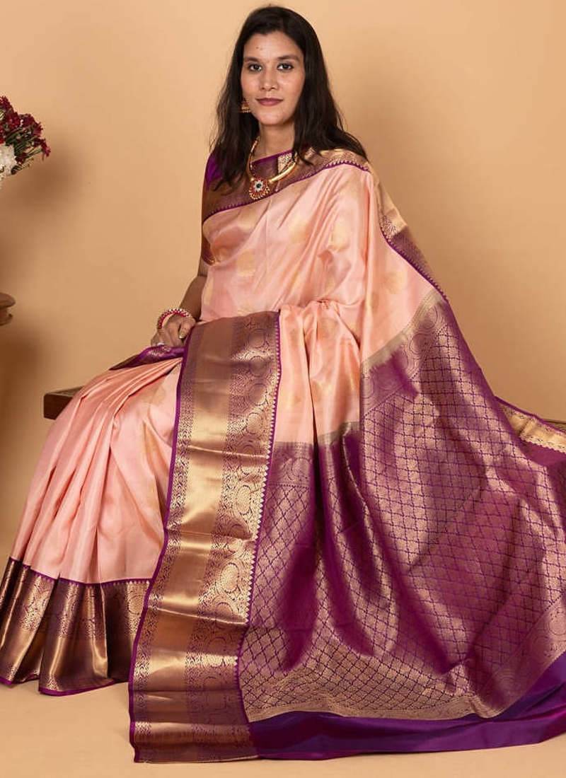 | Product Name | Pastel Pink And Violet Korvai Pure Silk Saree | |
