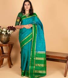 Peacock blue and forest green pure kanjivaram silk saree