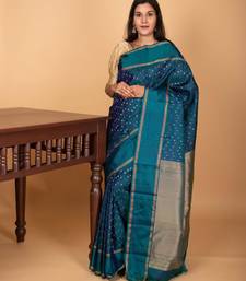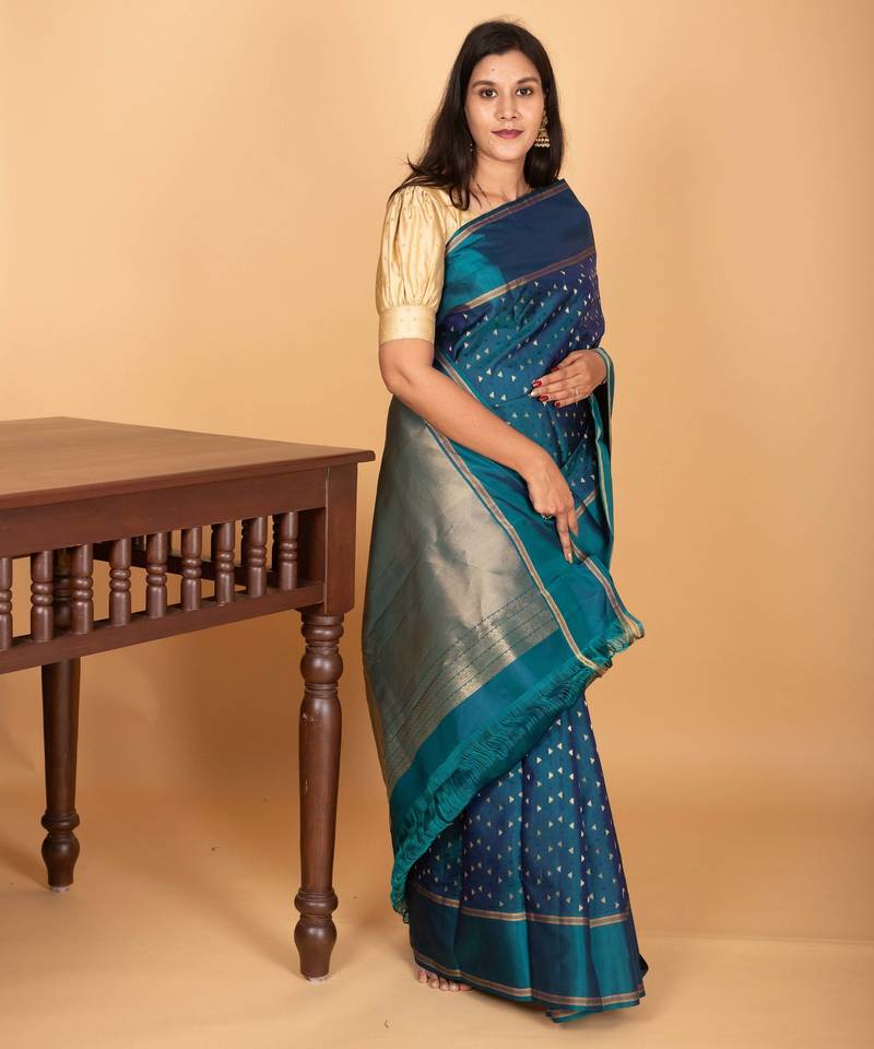 Peacock blue butta pure kanchi silk saree