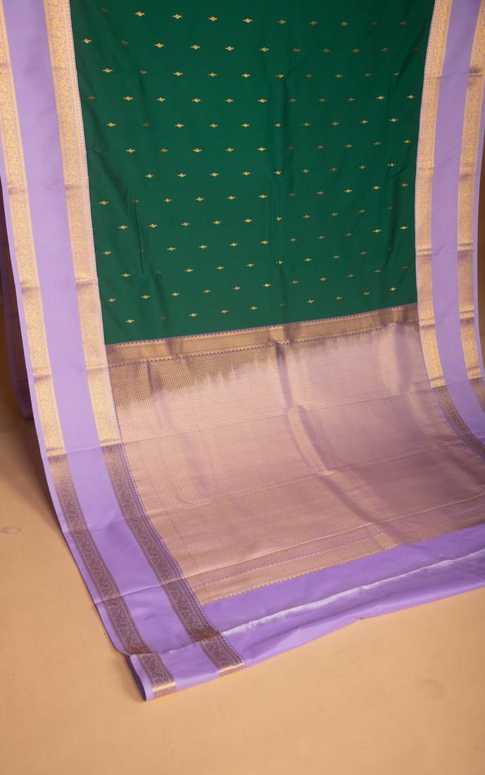| Product Name | Pine Green And Pastel Lavender Retta Patta Border Semi Silk Saree | |