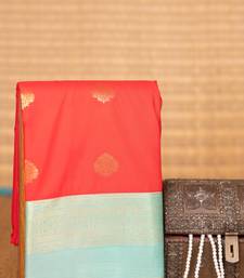 Red orange and pastel blue semi silk saree