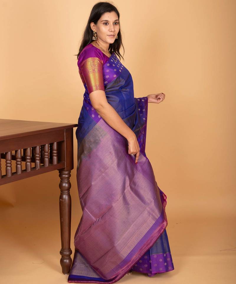| Product Name | Royal Blue And Violet Zari Striped Pure Kanchi Silk Saree | |