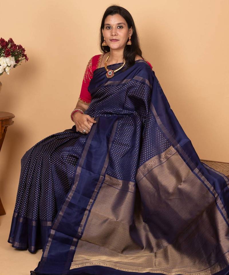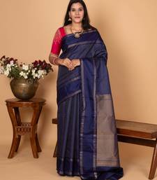Royal blue pure kanjivaram silk saree