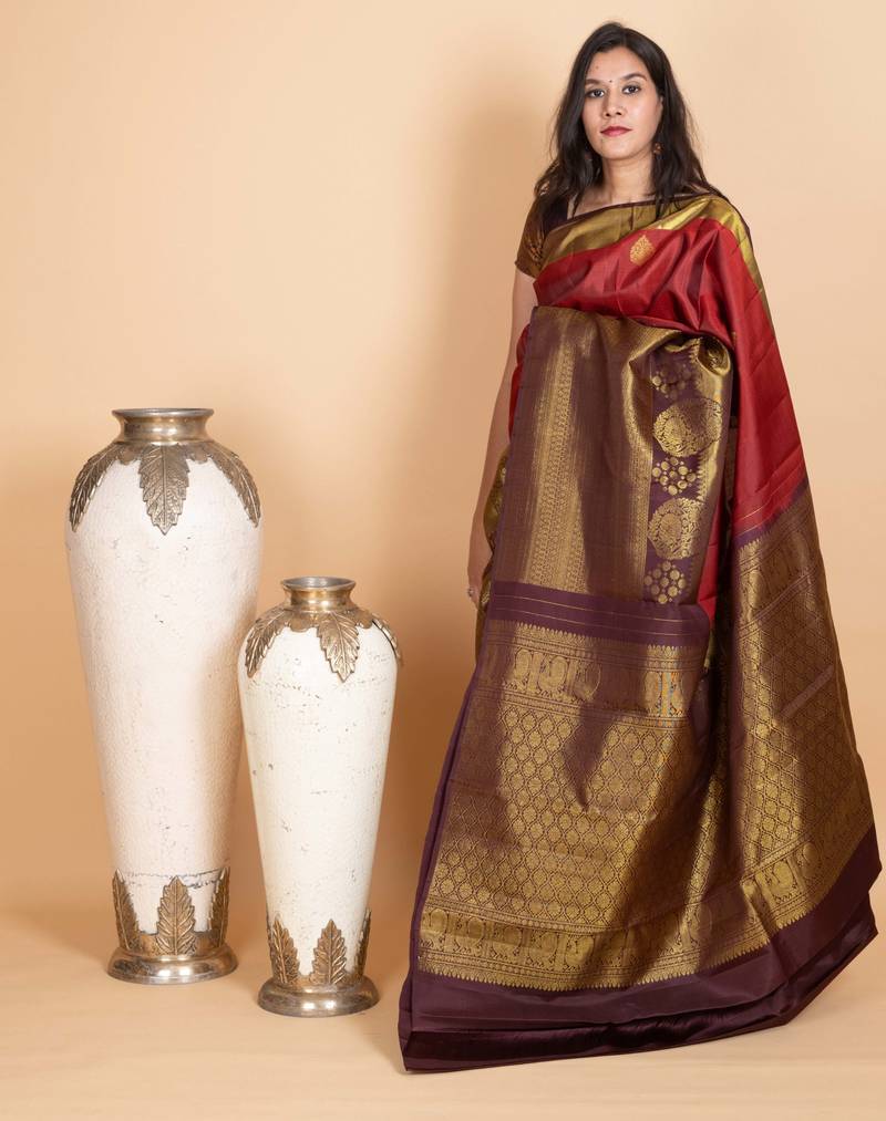 Rust red kanjivaram silk saree