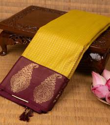 Saffron yellow and maroon soft silk saree