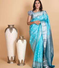 Sky blue and deep sky blue pure kanjivaram silk saree