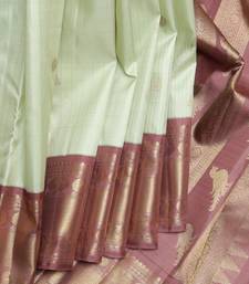 Tea green and chocolate pure zari silk saree