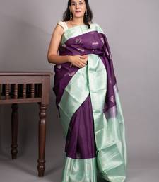 Violet and teal green pure kanjivaram silk saree