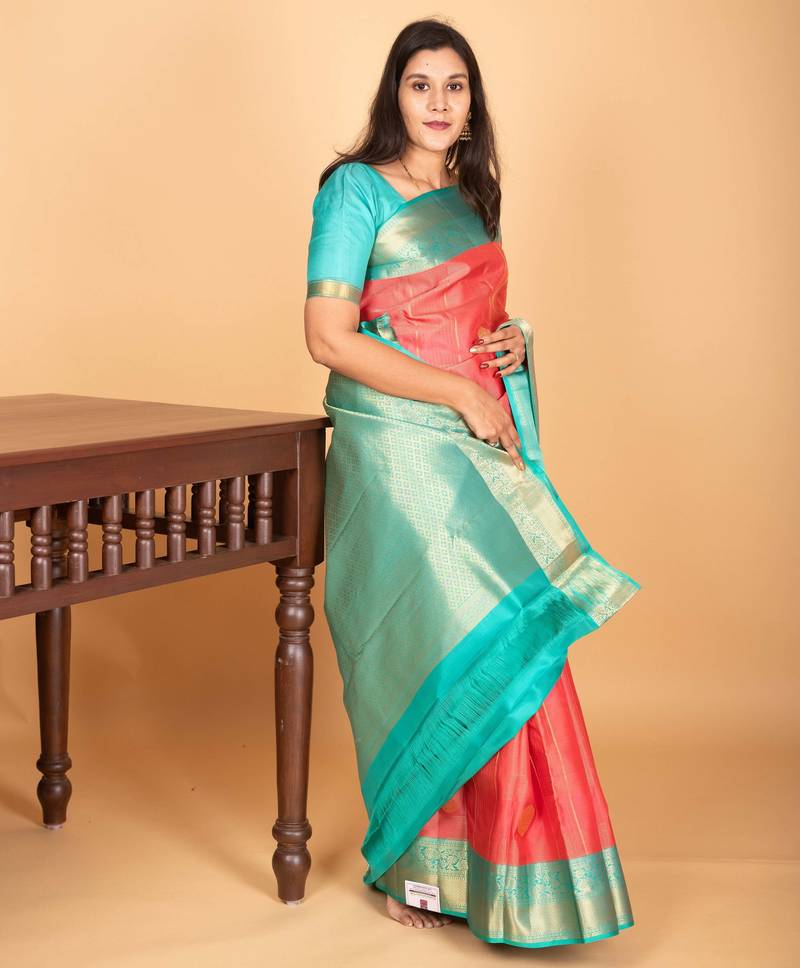 | Product Name | Watermelon Pink And Turquoise Blue Checked Pure Kanjivaram Silk Saree | |
