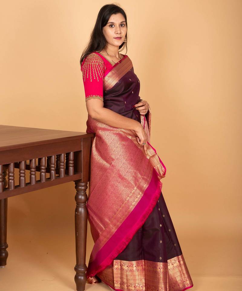 | Product Name | Wine Purple And Magenta Traditional Pure Kanchi Silk Saree | |