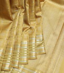 Yellow cream kanjivaram pure zari silk saree