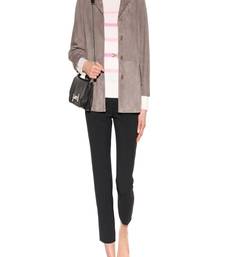 Women’s soft suede leather blazer jacket casual button front coat with pockets