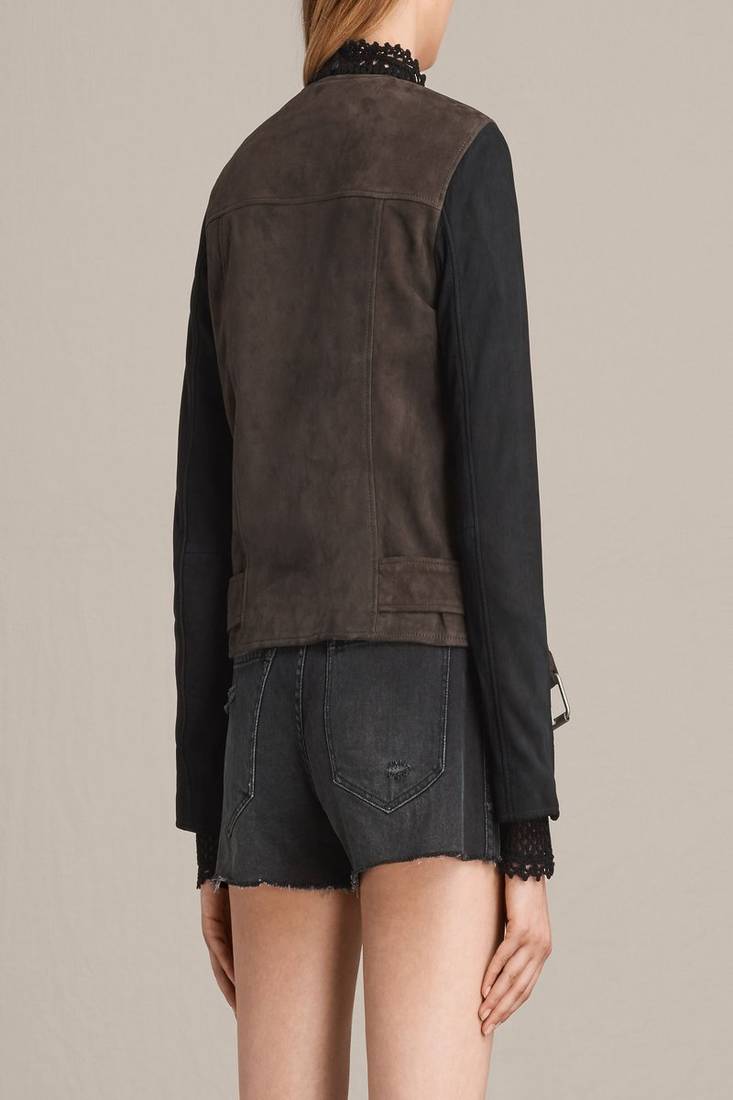 Women’s two-tone biker jacket brown & black leather zip front style