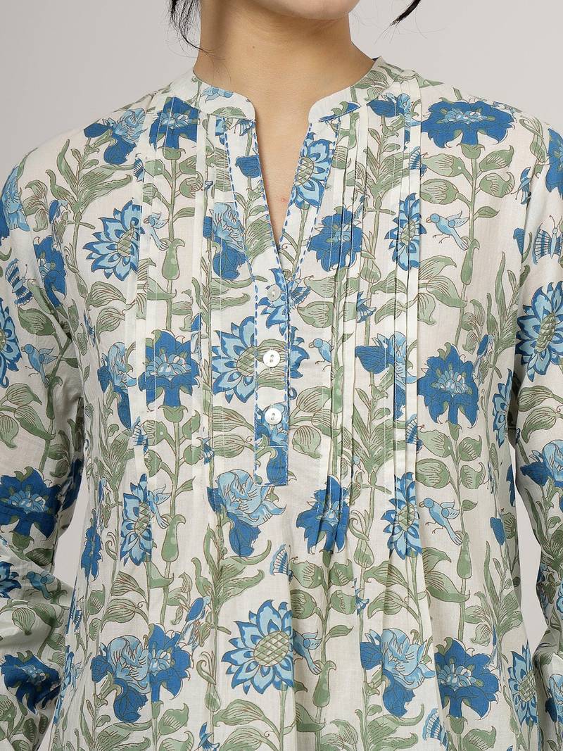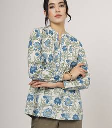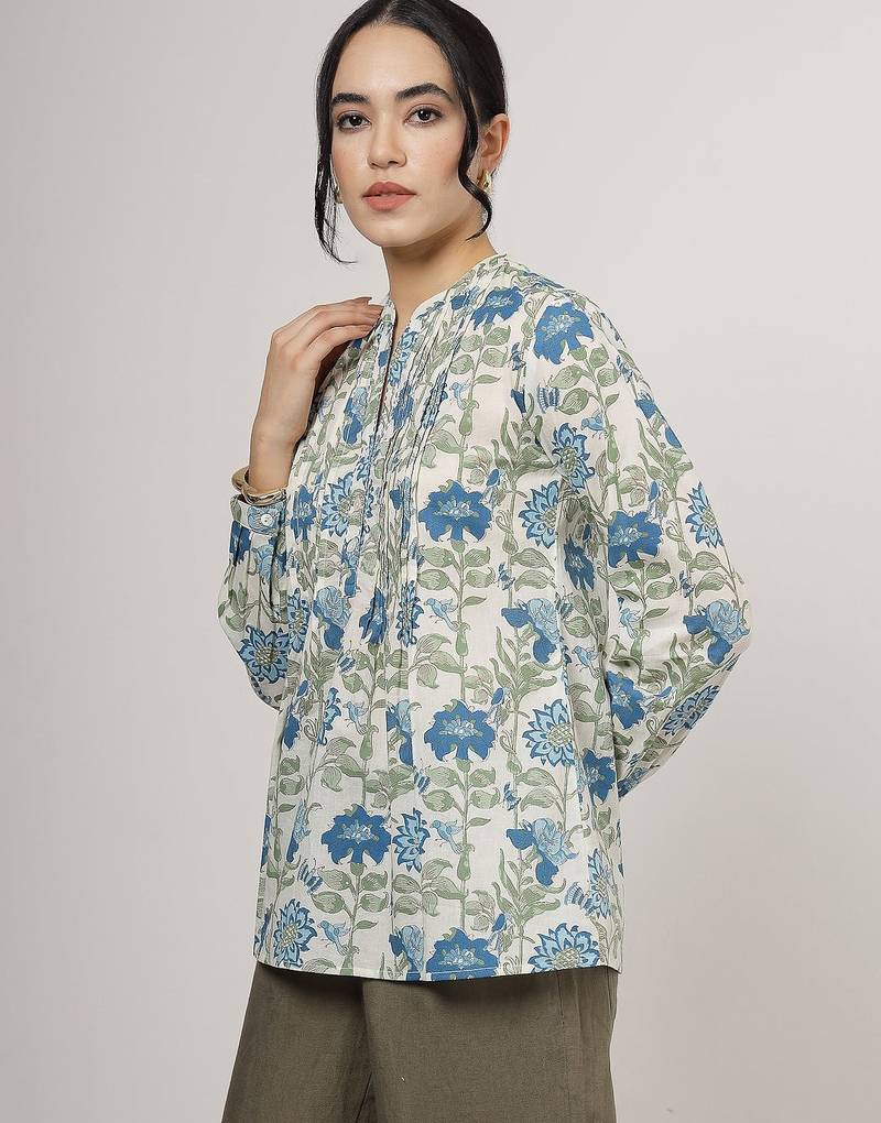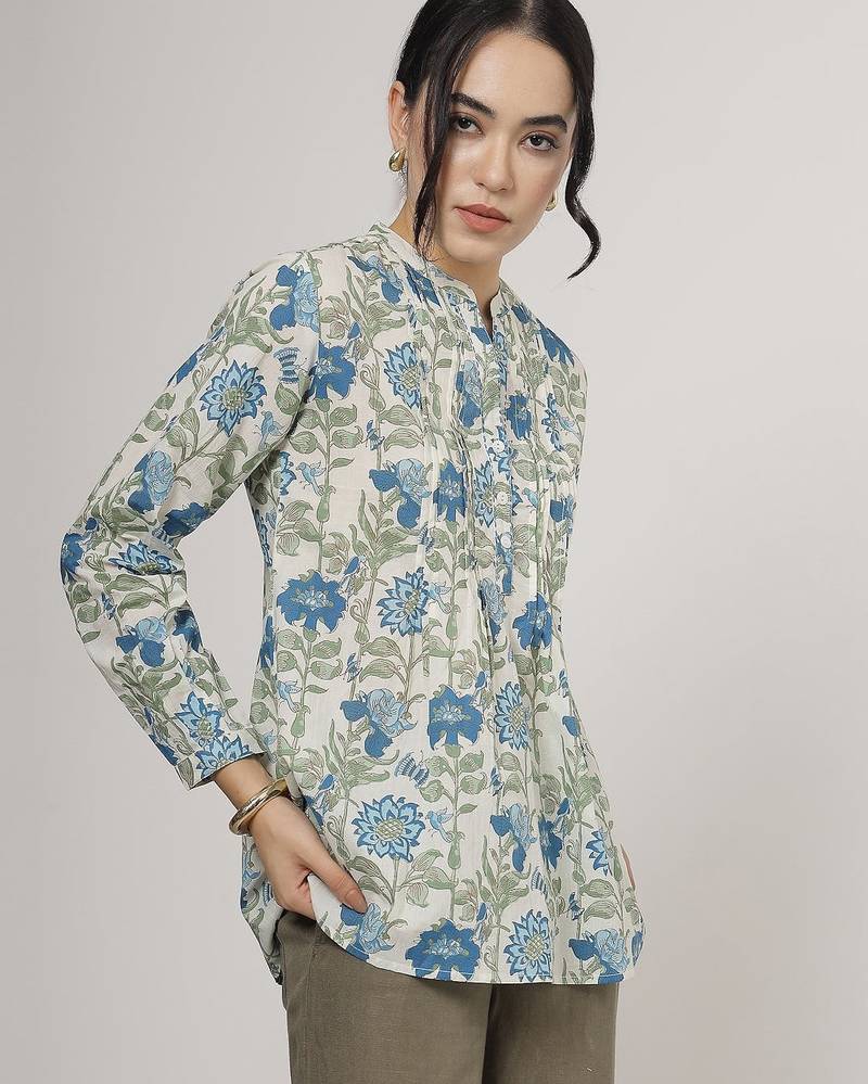 | Product Name | Blue Floral Cotton Top With Mandarin Collar | |