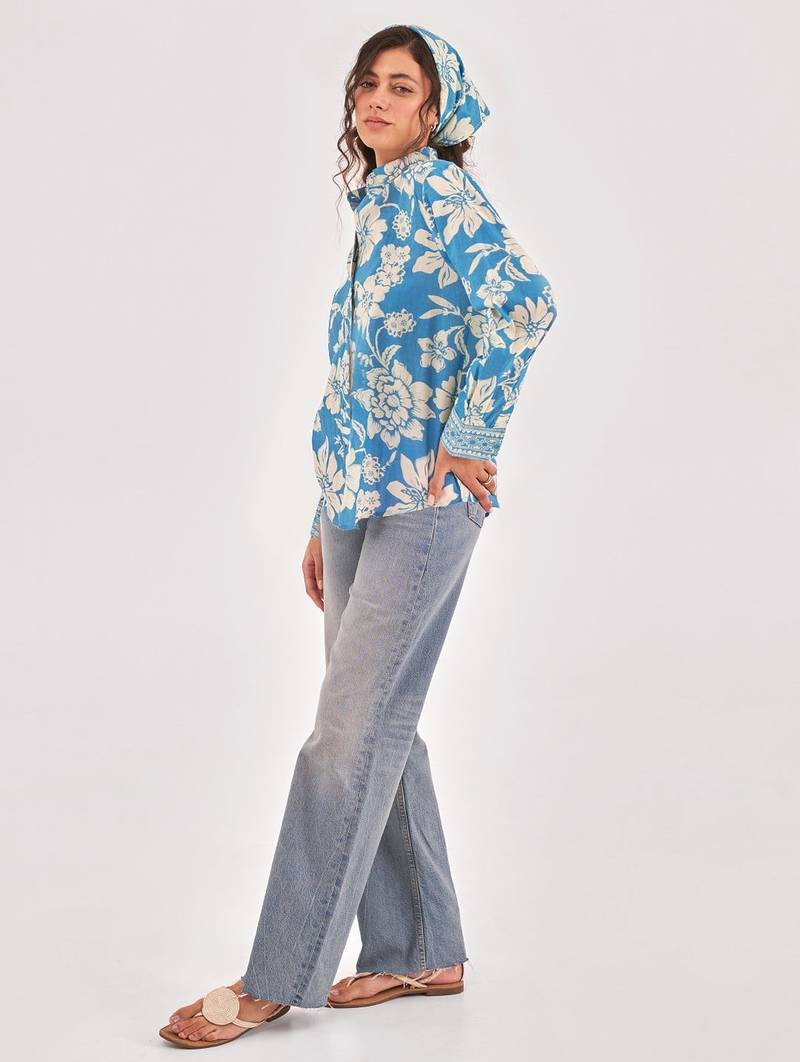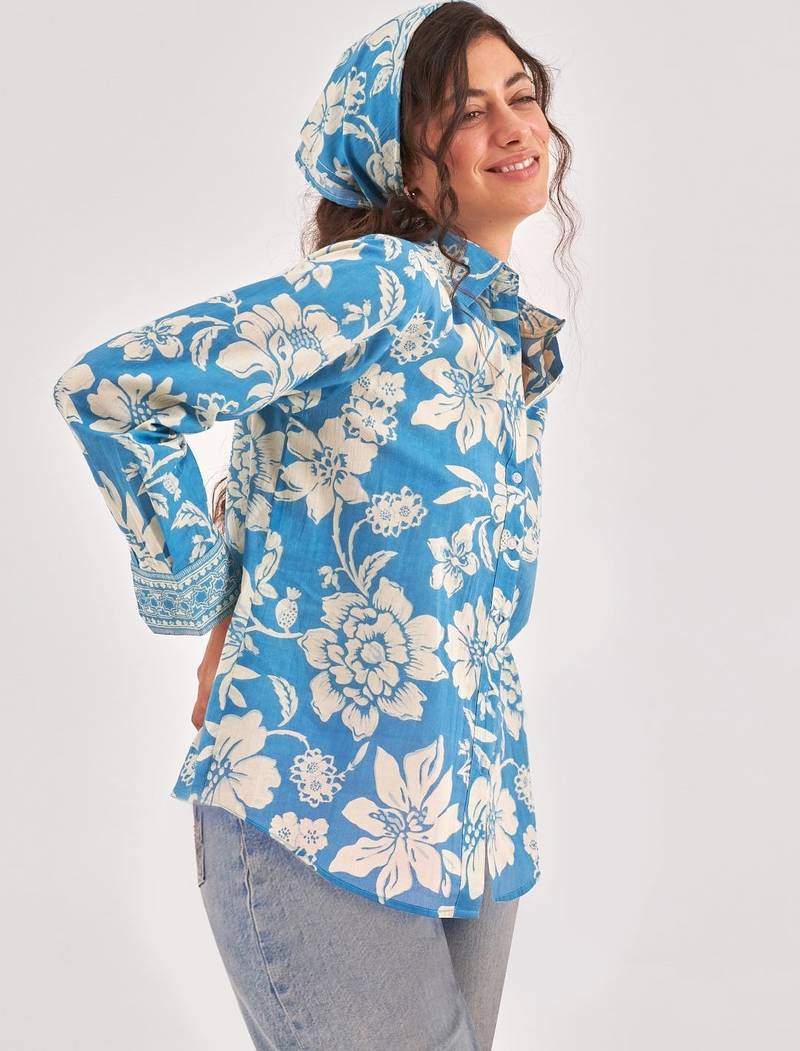 | Product Name | Blue Floral Printed Shirt With Spread Collar & Button Placket | |