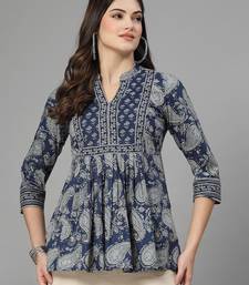 | Product Name | Dark Blue Paisley Print Gathered Top With Mandarin Collar, 3/4 Sleeves & Sequinned Yoke | |