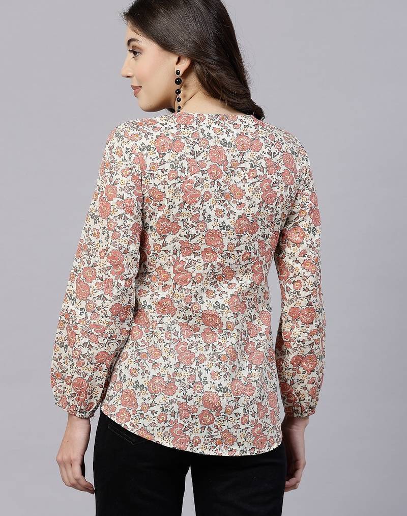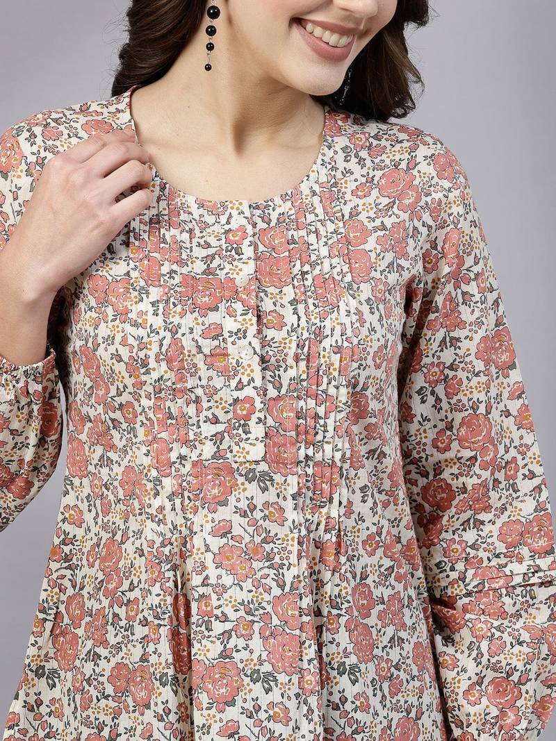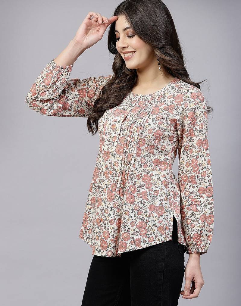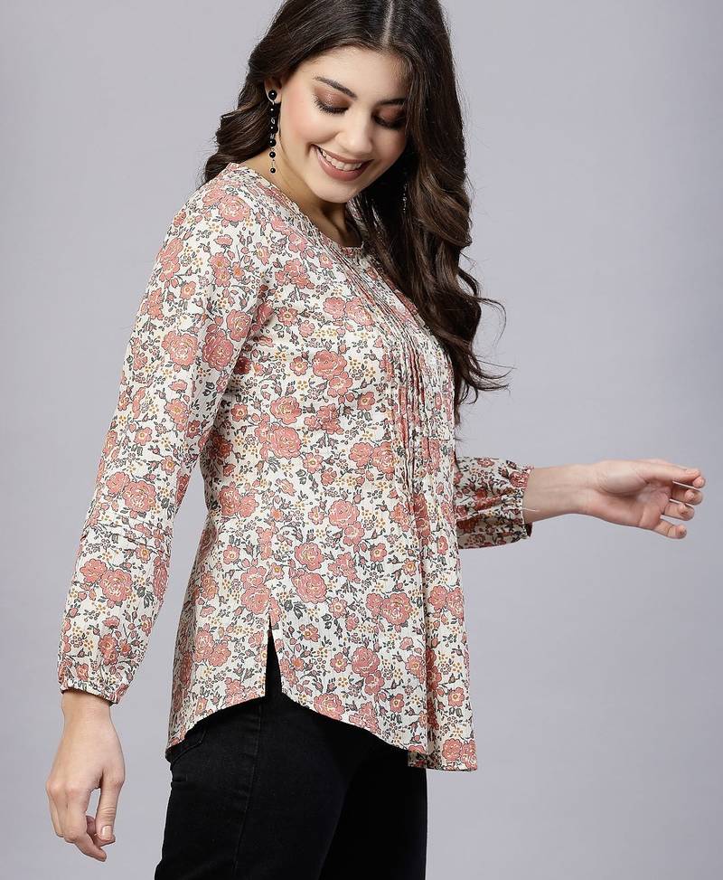 | Product Name | Peach Ditsy Print Top With Pintucks & Button Closure | |