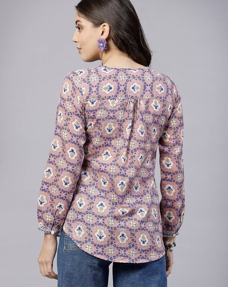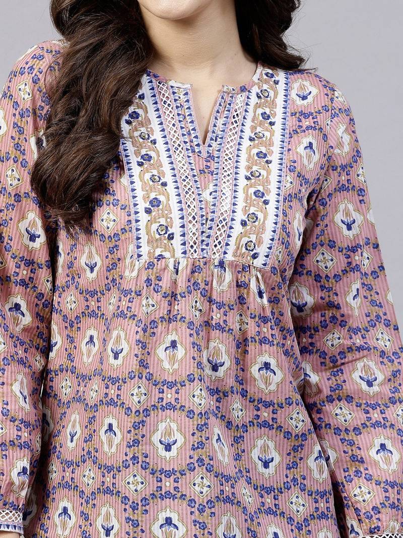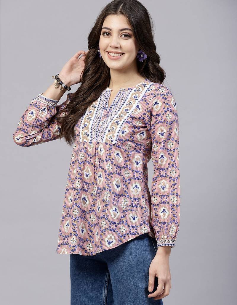 | Product Name | Pink Floral Printed Top With Lace & Embellished Yoke | |