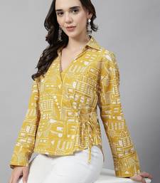 | Product Description | Tie Up Yellow Cotton Printed Top With V Neckline, Collar, Cuff Sleeves; No Lining |