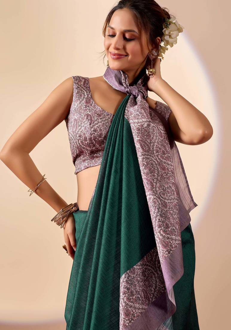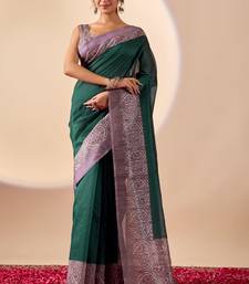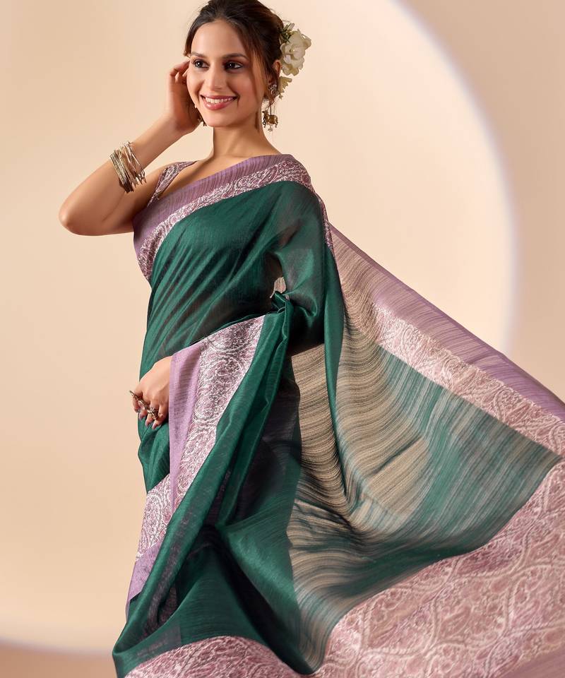| Product Name | Green Solid Colour Cotton Silk Semi Formal Saree With Blouse | |