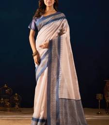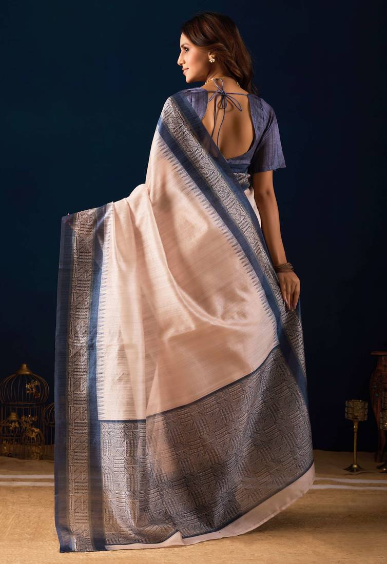 Ivory solid colour cotton silk semi formal saree with blouse