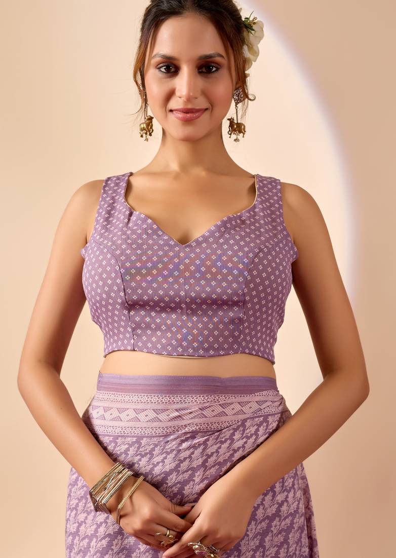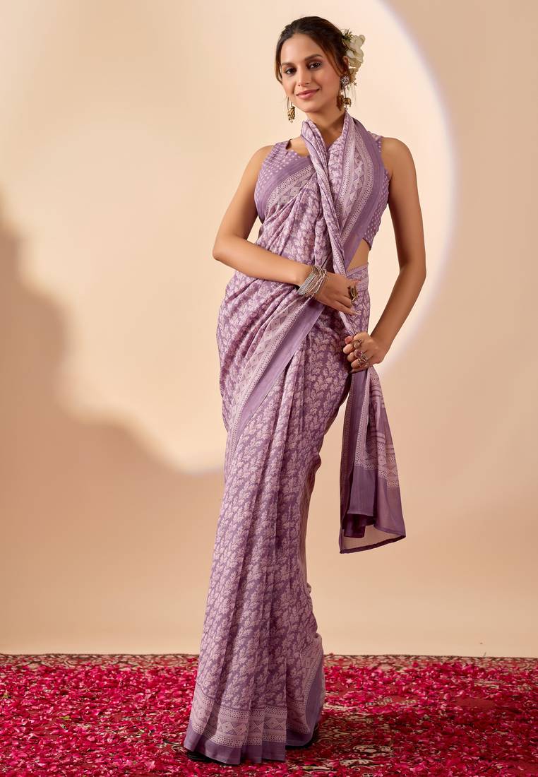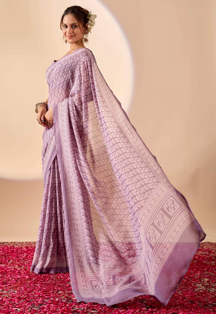 | Product Name | Lavendar Digital Floral Print Chiffon Festive Ethnic Saree With Blouse | |