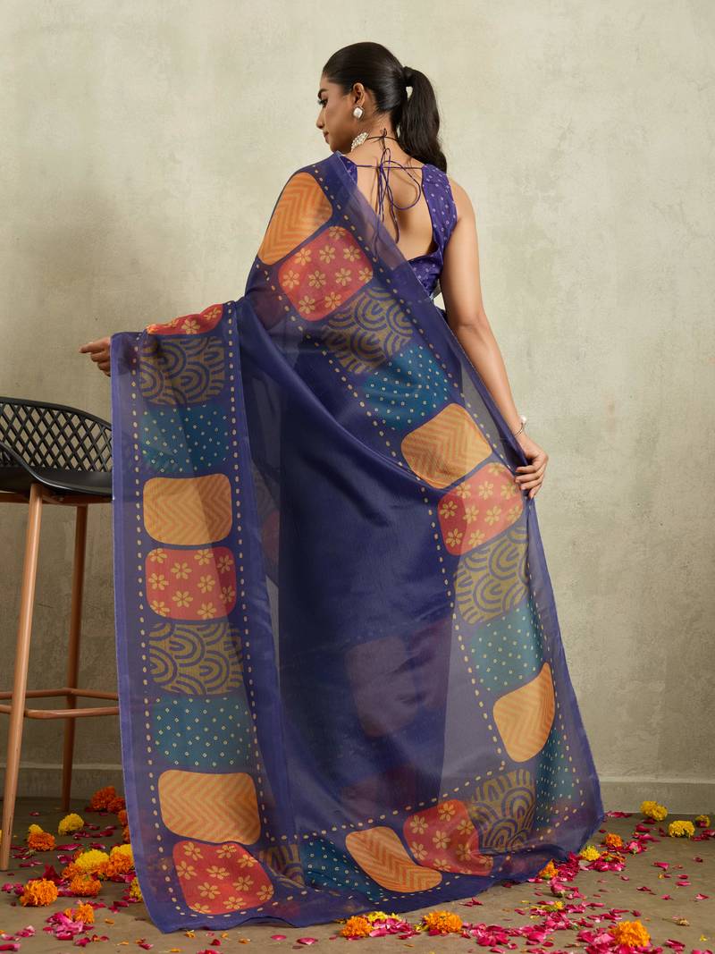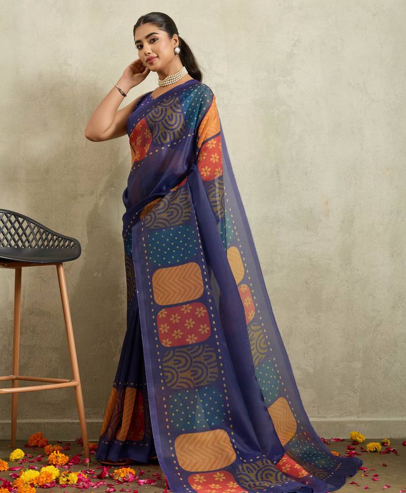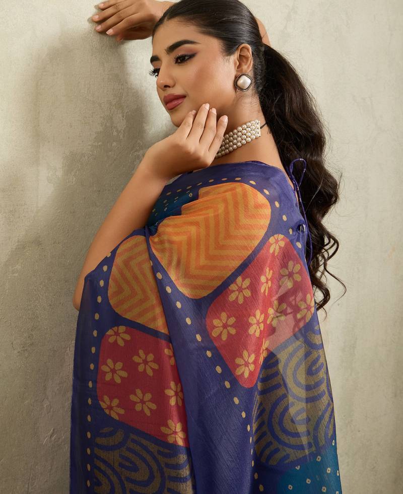 | Product Name | Navy Geometric Print Chiffon Ethnic Causal Wear Saree With Blouse | |