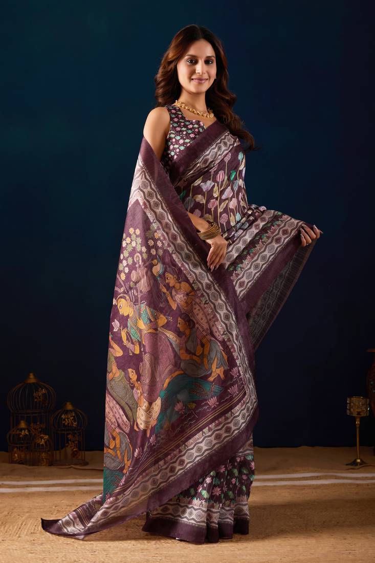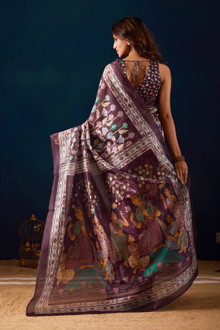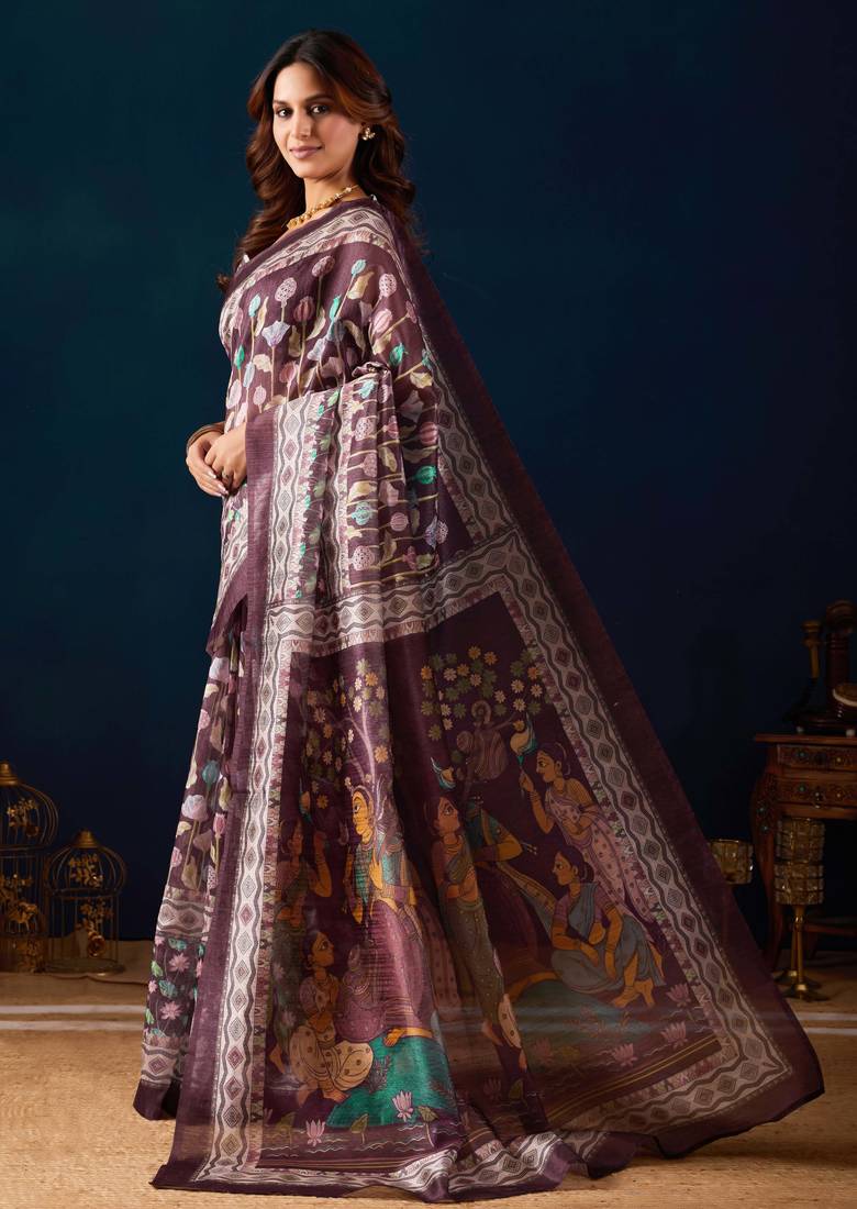 | Product Name | Wine Kalamkari Tussar Blend Festive Wear Ethnic Saree With Blouse | |