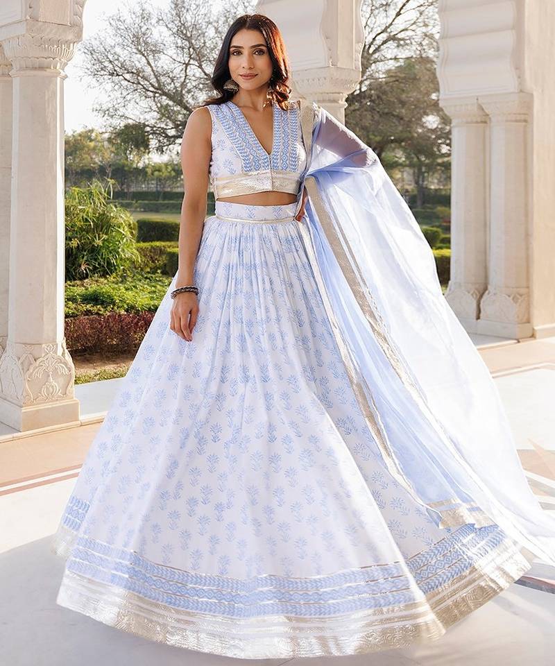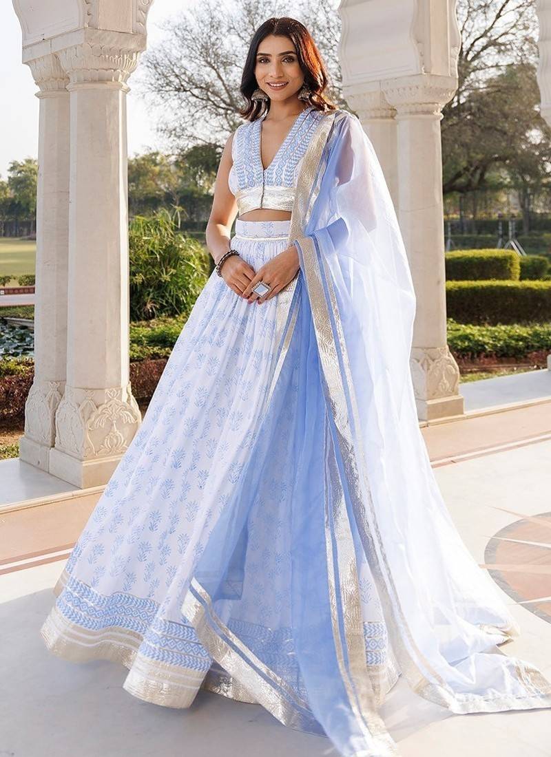 | Product Name | Angel Falls Blue And White Handblock Printed Lehenga Set | |