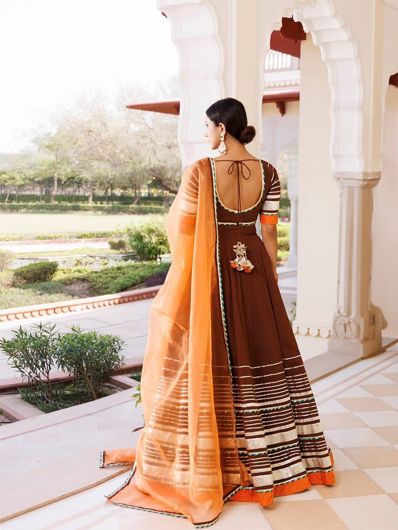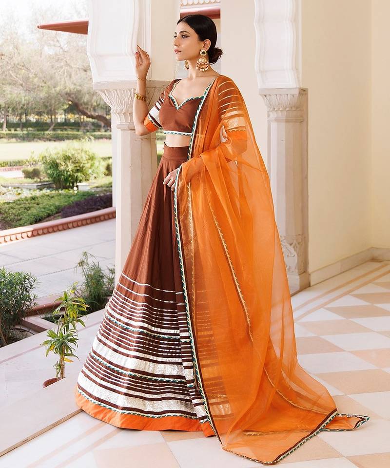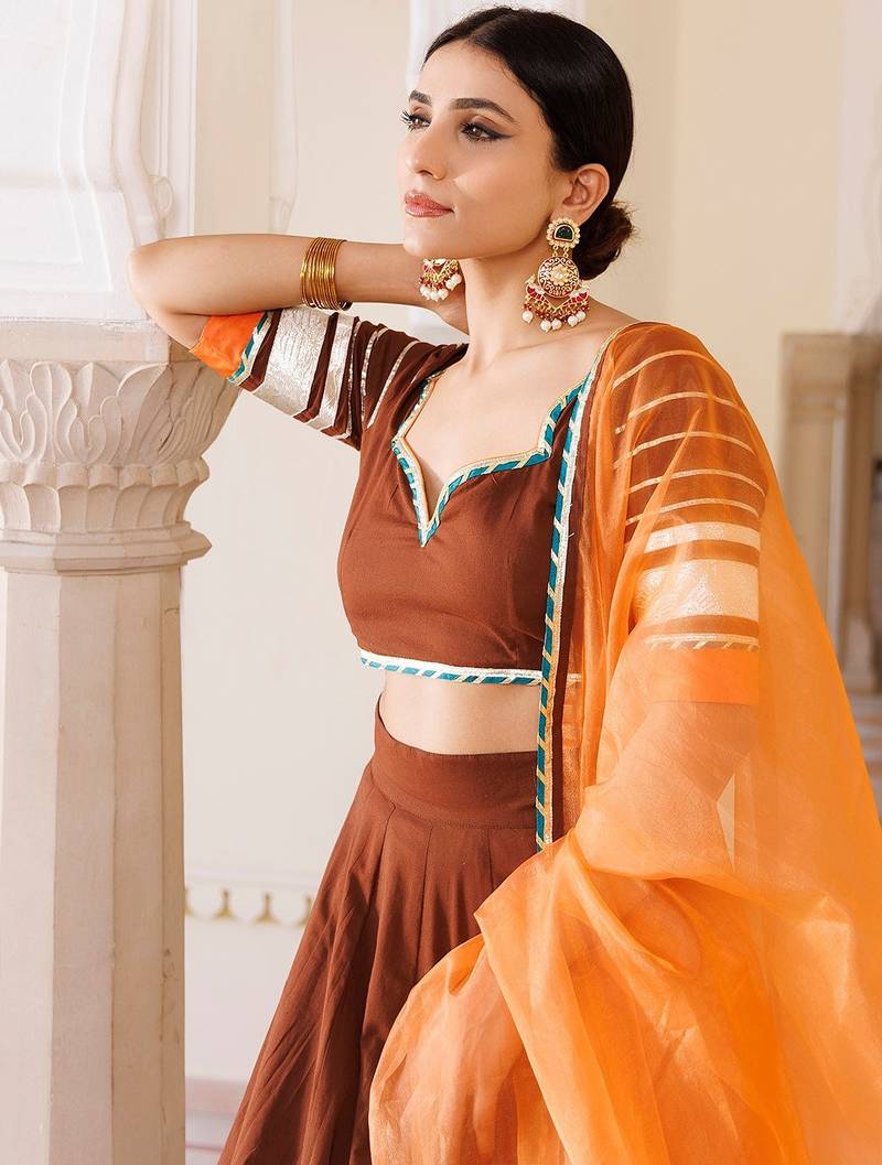 Brunette brown and orange cotton lehenga set