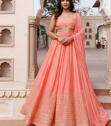 | Product Description | Discover A Stunning Coral Hued Lehenga And Choli Ensemble Crafted From Premium Satin Silk, Complemented By An Ethereal Chiffon Dupatta. The Choli Boasts A Chic V Neckline And Sleeveless Silhouette, Embellished With Exquisite Gota Work Accents. Perfect For Celebrations And Soirées, This Ensemble Exudes Luxury And Sophistication, Showcasing Opulent Satin Silk And Meticulous Craftsmanship For An Unforgettable Allure. |