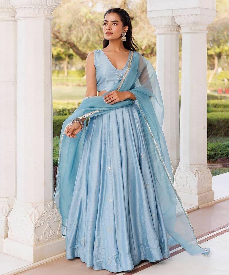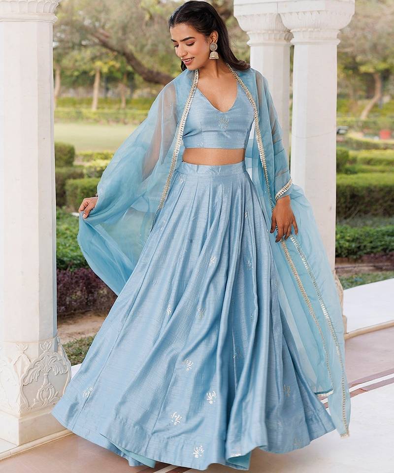 | Product Description | Introducing Our Elegant Coastal Blue Lehenga Set, Perfect For Any Festive Occasion. Crafted With Lustrous Satin Silk Fabric, This Set Features A Mauve Embroidered Short Blouse With A Flattering V Neck, Paired With A Matching Skirt. The Ensemble Is Complemented By A Mauve Organza Dupatta, Adding A Touch Of Grace To Your Look. Embrace The Rich Tones And Luxurious Feel Of This Rose Wine Lehenga Set And Stand Out At Your Next Event. Order Now And Make A Style Statement! |