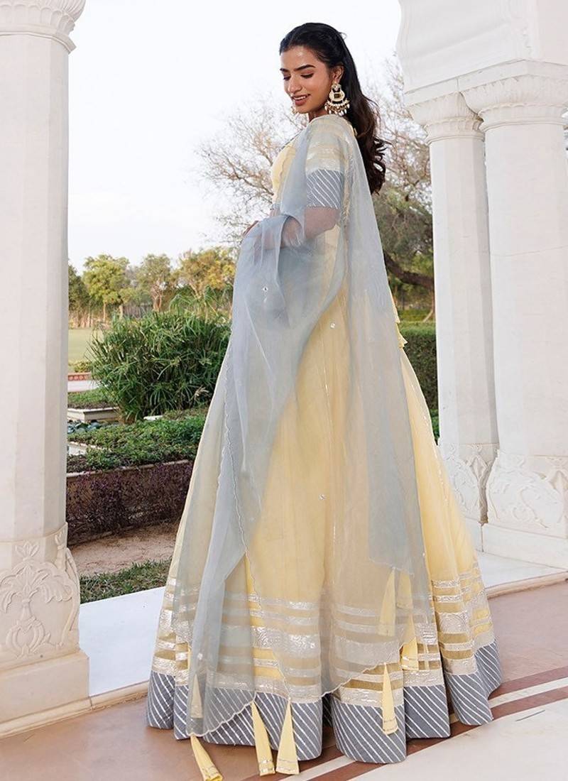 | Product Name | Morning Sun Yellow And Grey Organza Lehenga Set | |