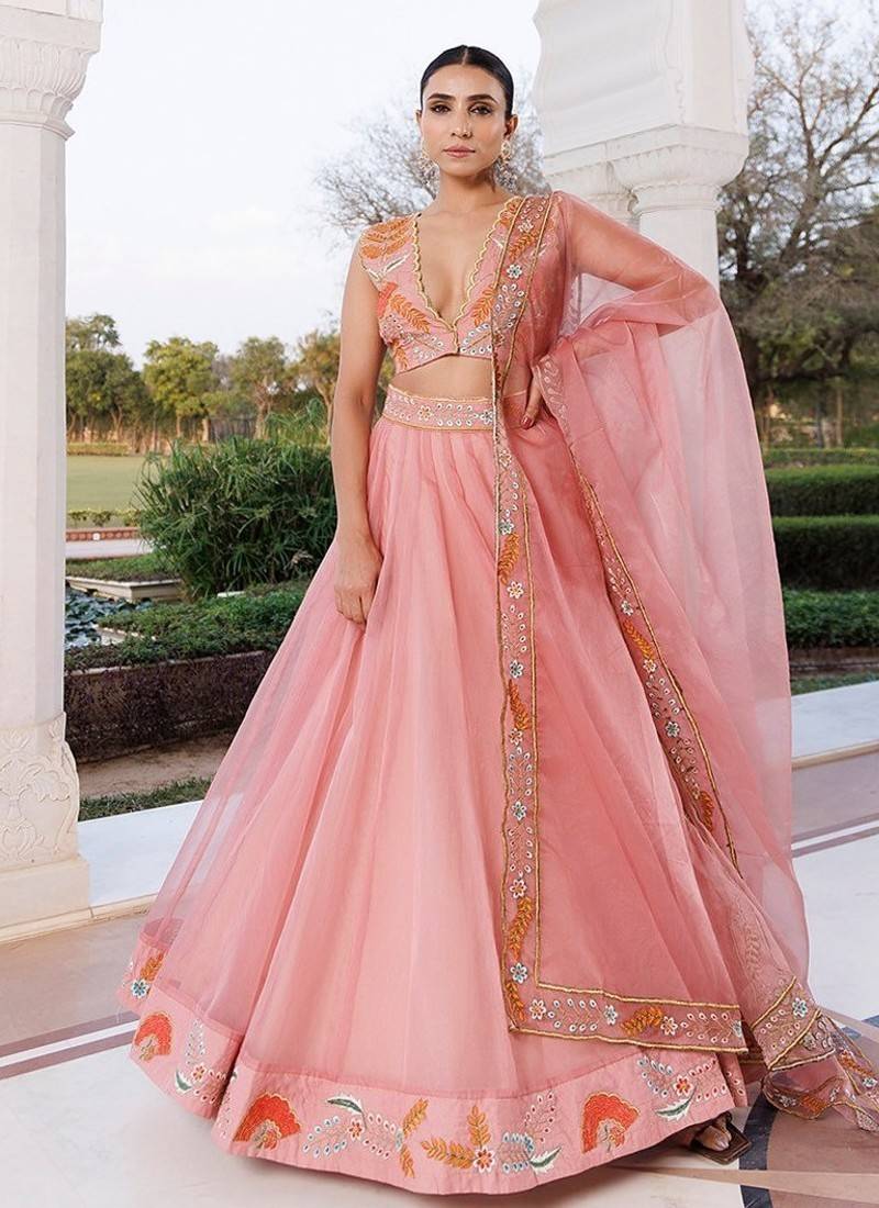 | Product Name | Peach Fuzz Embroidered Organza Lehenga Set | |