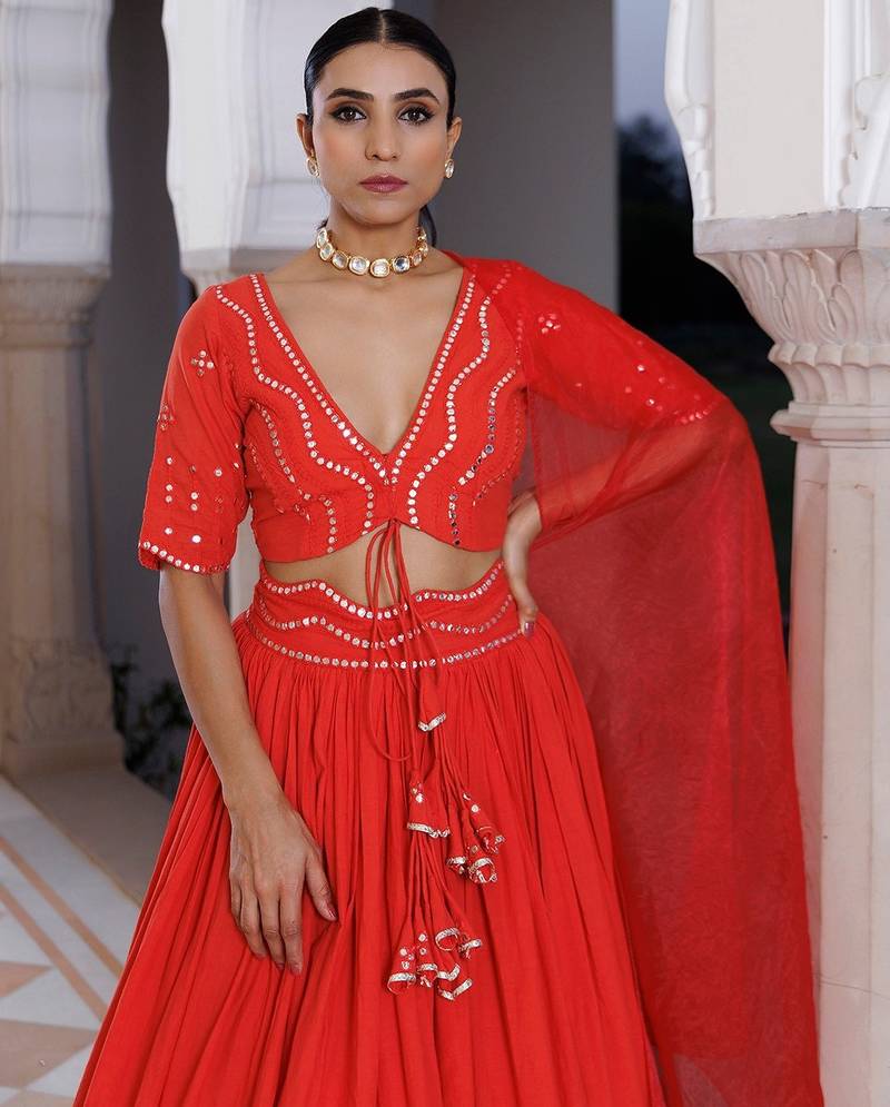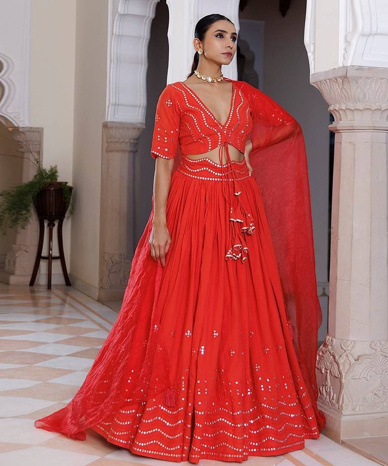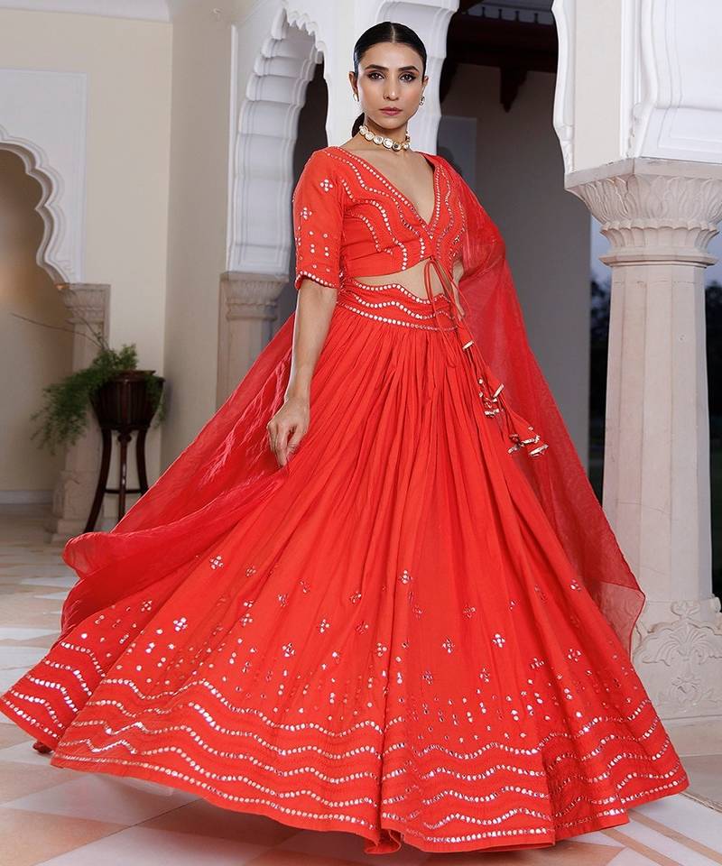 | Product Name | Red Cherry Mirror Work Embroidered Cotton Lehenga Set | |