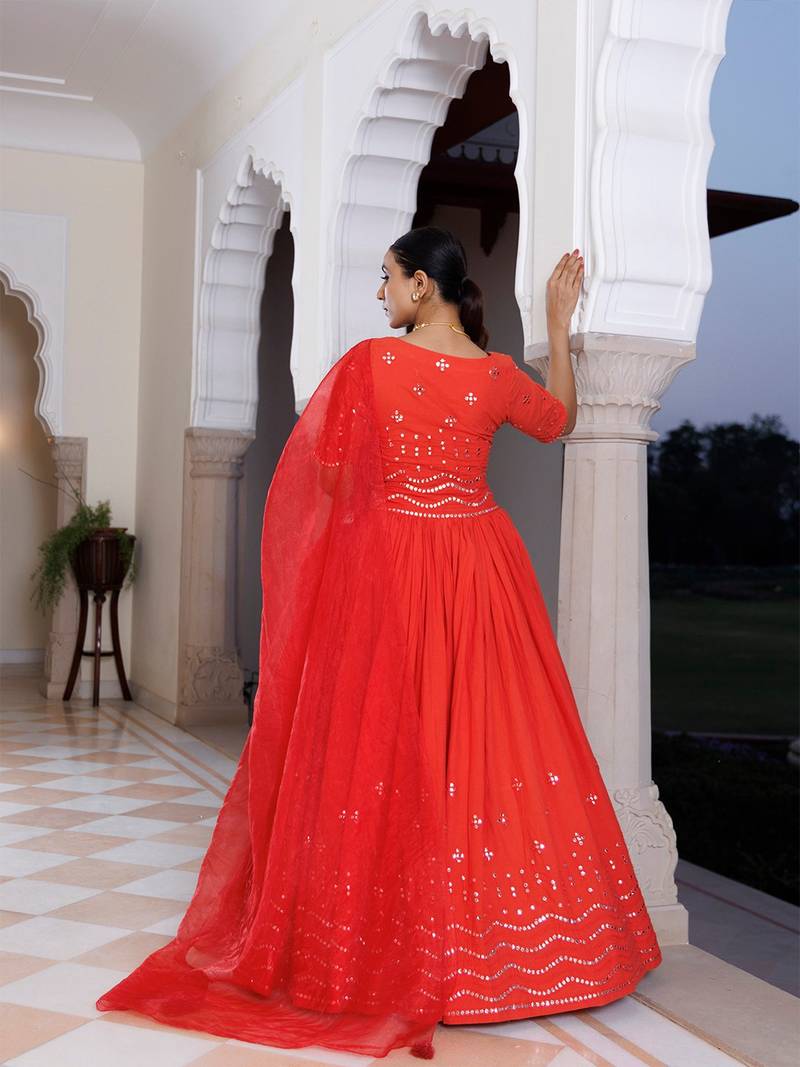 | Product Description | Discover Our Exquisite Red Cotton Lehenga And Choli Set Paired With A Luxurious Organza Dupatta. Crafted With Meticulous Embroidery And A Flattering V Neck Design, This Ensemble Epitomizes Elegance And Comfort. Perfect For Festive Celebrations And Soirées, Its Vibrant Hue And Intricate Detailing Exude Charm And Style. Elevate Your Wardrobe With This Timeless Piece That Seamlessly Combines Tradition With Contemporary Flair. |