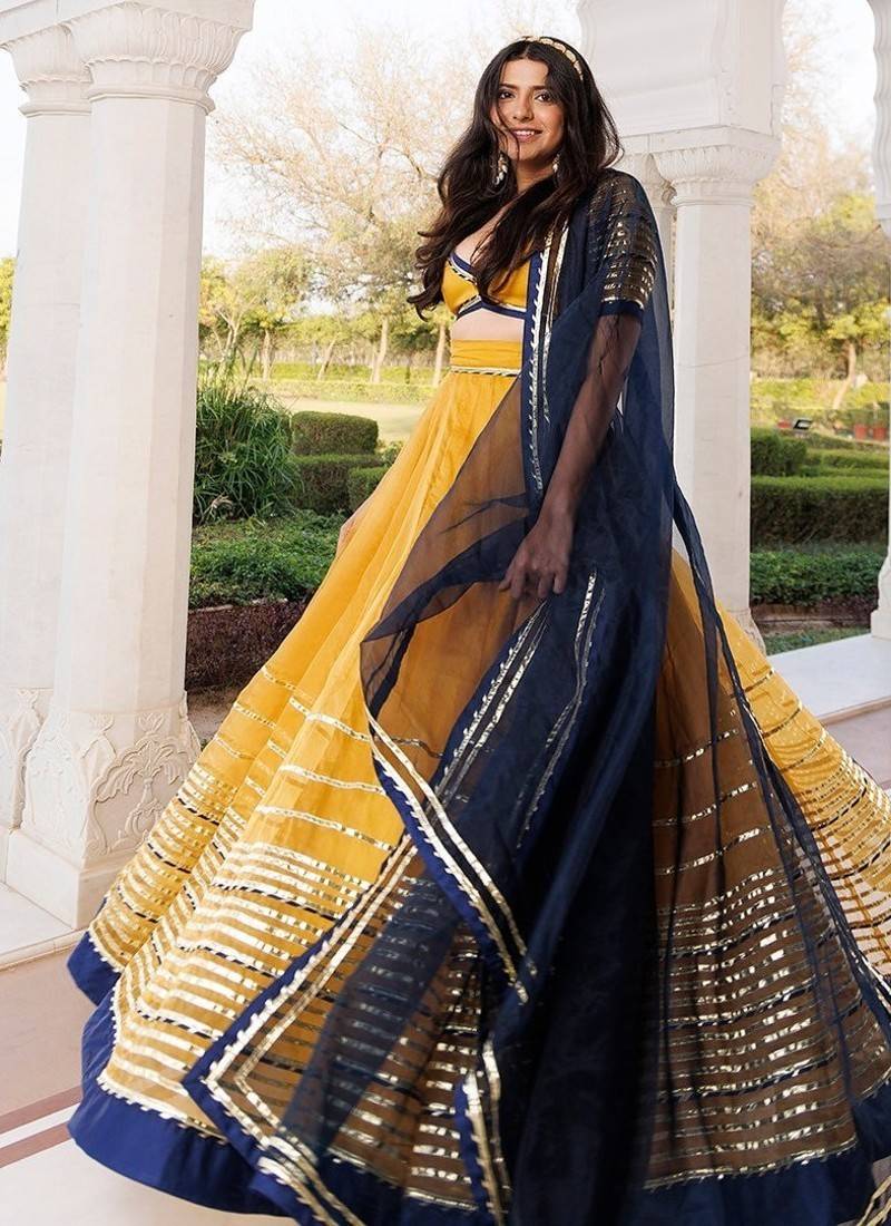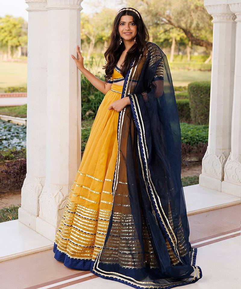 | Product Name | Sunset Gold Yellow And Navy Blue Lehenga Set | |